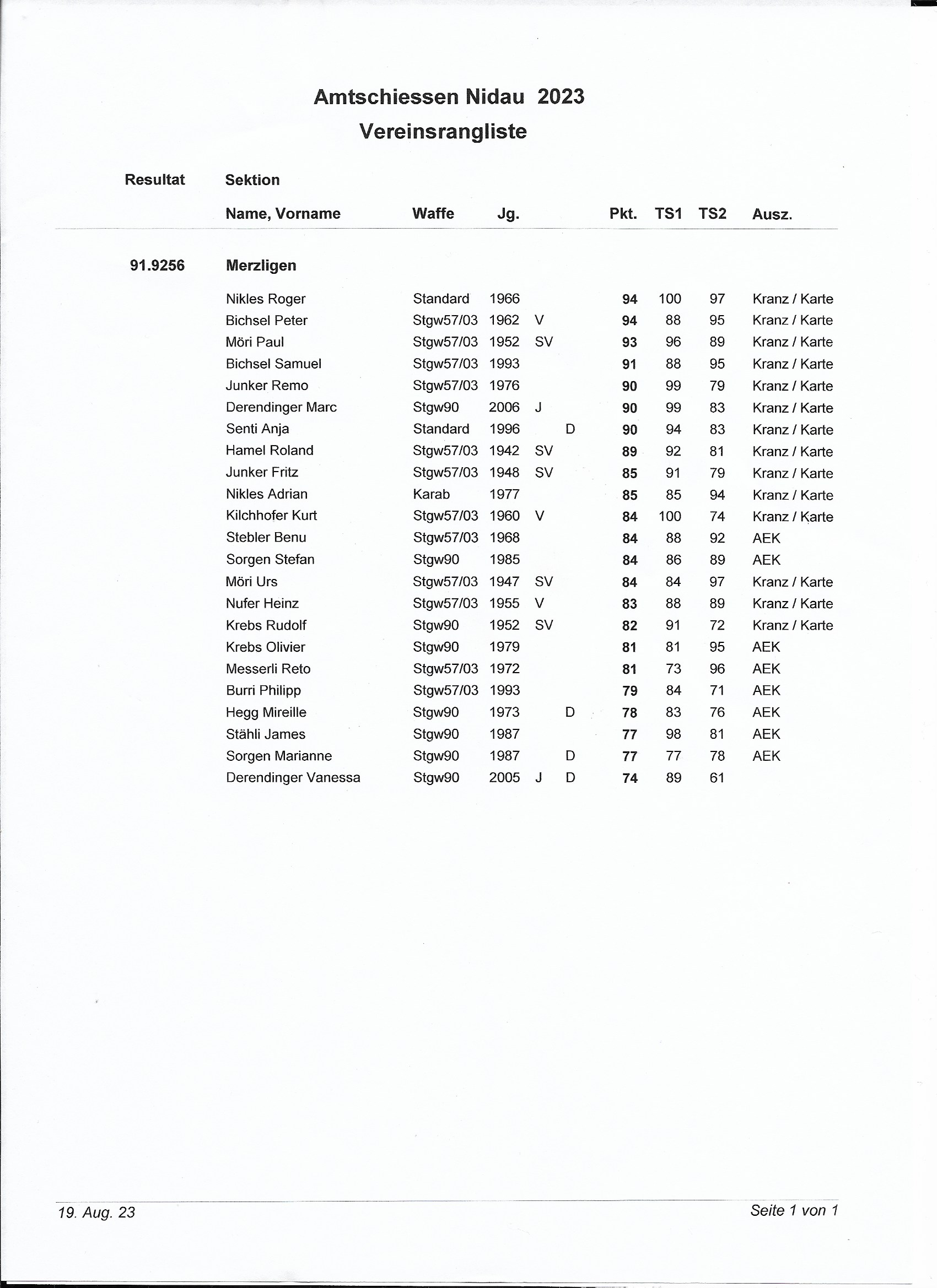 Feldschiessen Einzelrangliste / Schützenkönigausstich